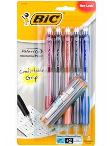 Velocity Pencil features a sliding sleeve over the tip to prevent lead from breaking, a top advance lead mechanism, and a sleek barrel. Smooth opaque rubber grip provides comfort and control while writing. Mechanical pencil has a high-quality eraser, conical retractable lead and three tough leads. Eraser end with a cap keeps eraser clean. Each pencil includes 3 strong leads and an eraser. Pack includes full tube of extra leads and five eraser refills.